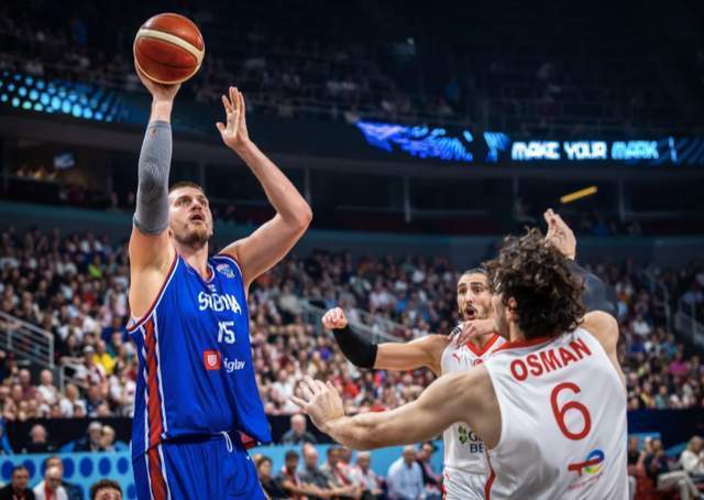 本场比赛申京和约基奇全都首发出战,胜者将成为小组第一。上来两队就陷入拉锯战,拉金三分命中,马林科维奇立马回应,塞尔维亚接连拿分,奥斯曼三分命中,随后申京内线接连拿分,一度帮助土耳其取得19-11领先,可塞尔维亚连拿7分追上,首节18-19落后。次节比赛,两队进攻状态依然火热,比分更是交替领先,分差一直没有拉开,半场塞尔维亚49-46领先。